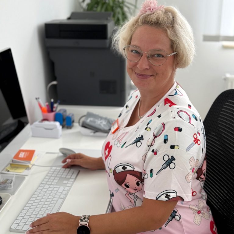 Mein beruflicher Weg begann in einer Betriebspoliklinik, führte weiter über die stationäre Altenpflege bis hin zu dieser Hausarztpraxis hier in Sandersdorf. Seit August 2020 bin ich Teil dieses Teams.